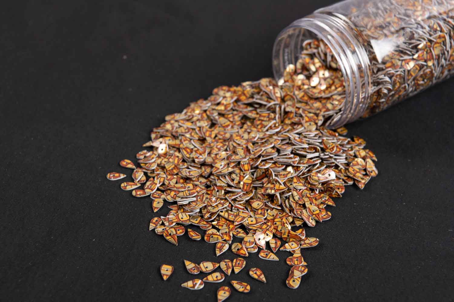 Lightweight and durable, our plastic sequins add vibrant shine and texture to any project. Available in a variety of colors, shapes, and finishes, they’re perfect for clothing, accessories, crafts, and décor. Easy to sew or glue for dazzling results.