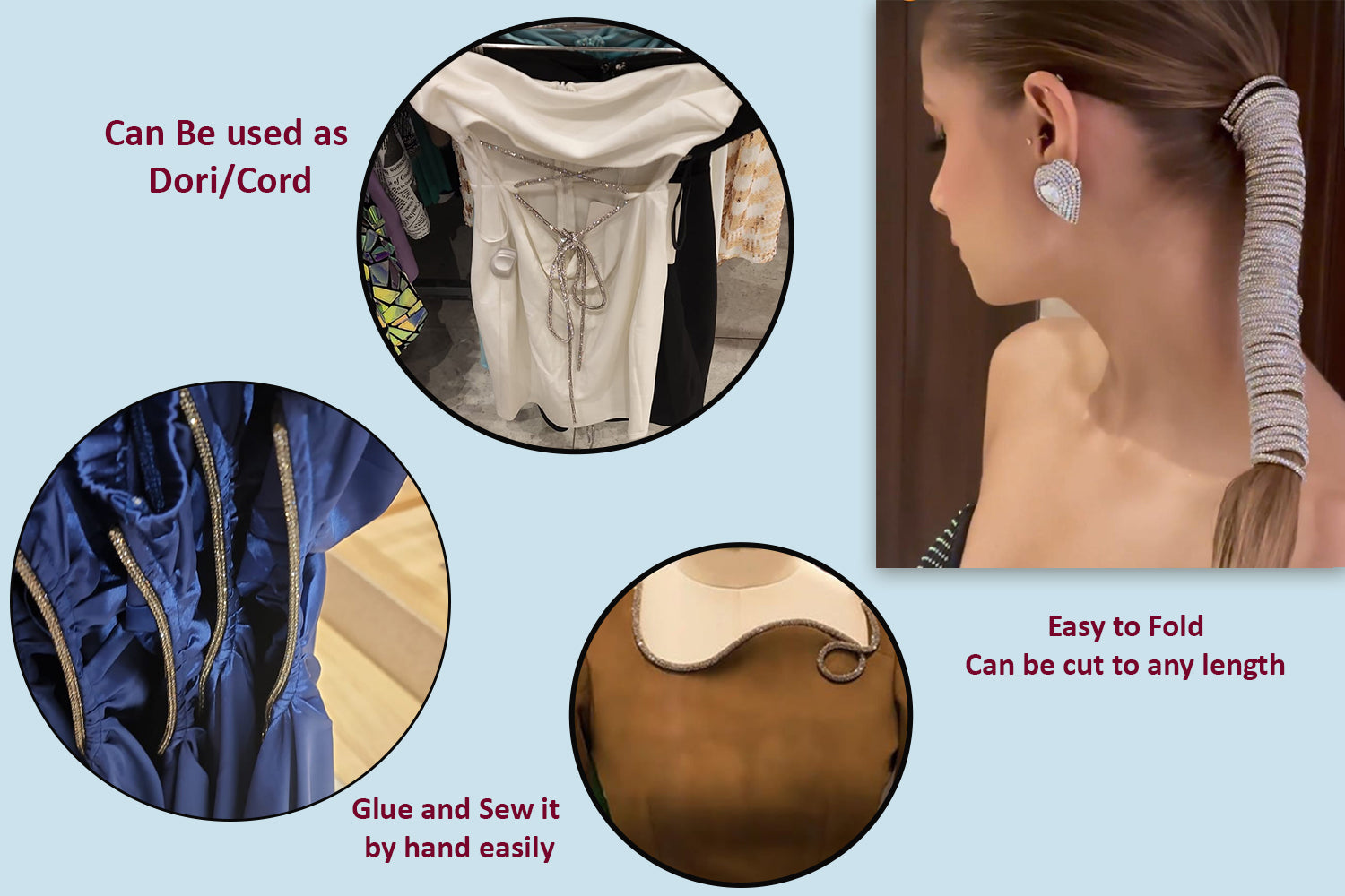 Mohan Shoppe Crystal Rhinestone Shiny Glitter Rope Chain String Rhinestone Cord Trim Package of 1 Meter