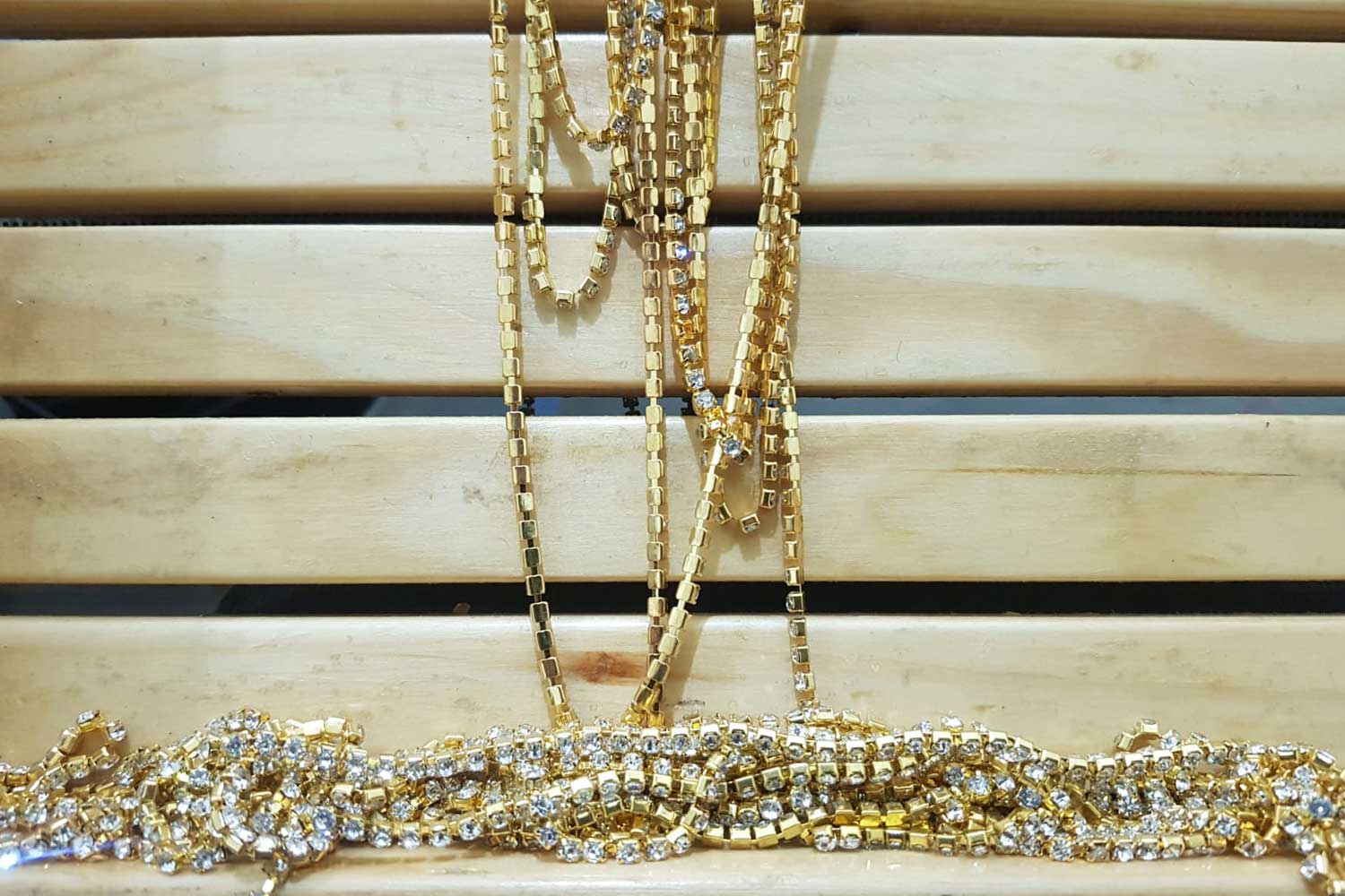 Mohan Shoppe golden-Silver color Stone Chain Cup Chain Rhinestone Chain for Jewlery Making etc. Pack of 5 Meters