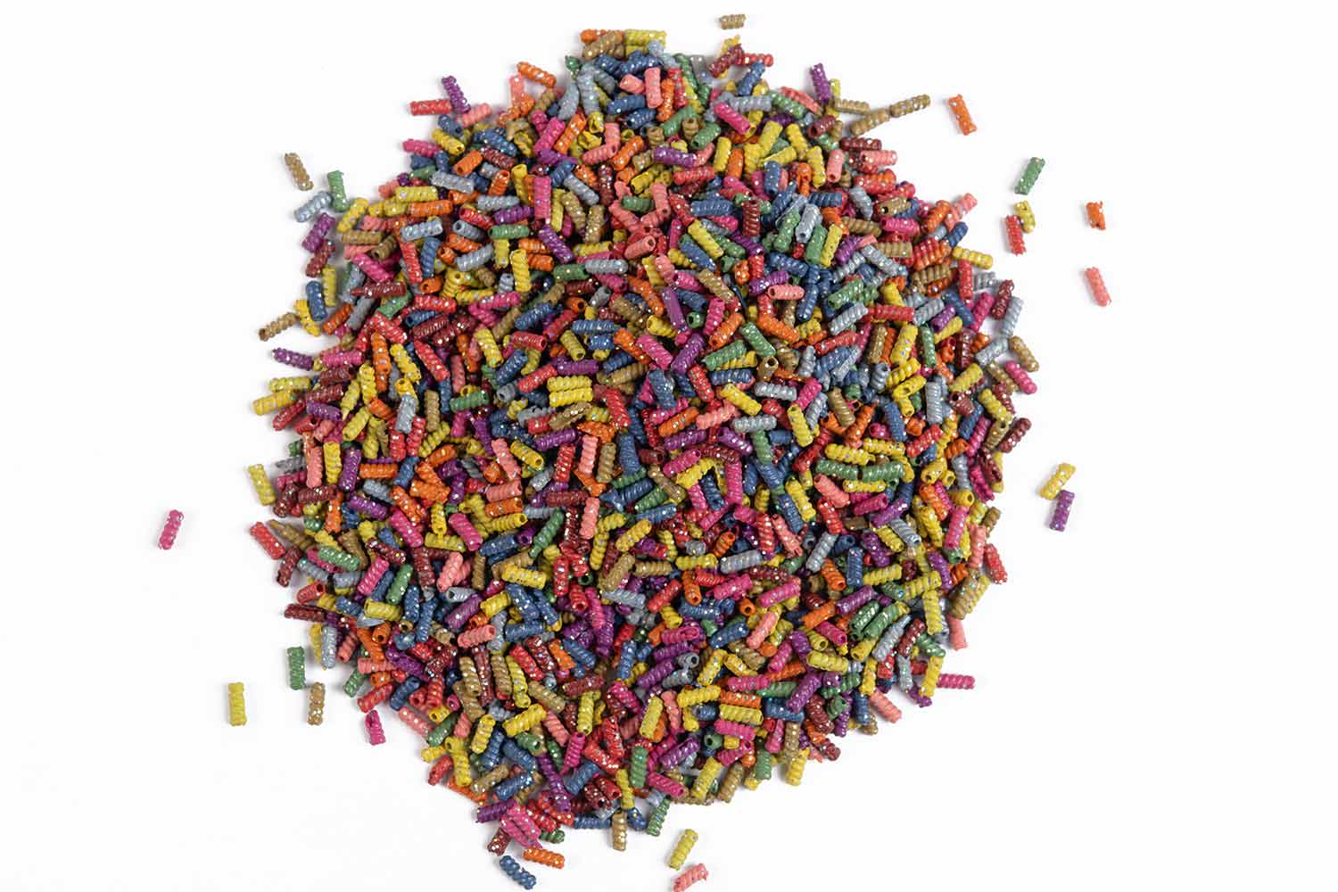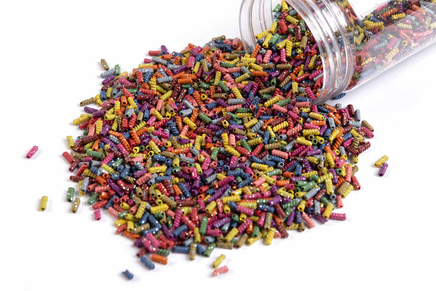 Multi Color Cylinderical Shape Plastic Beads Package of 50 Grams