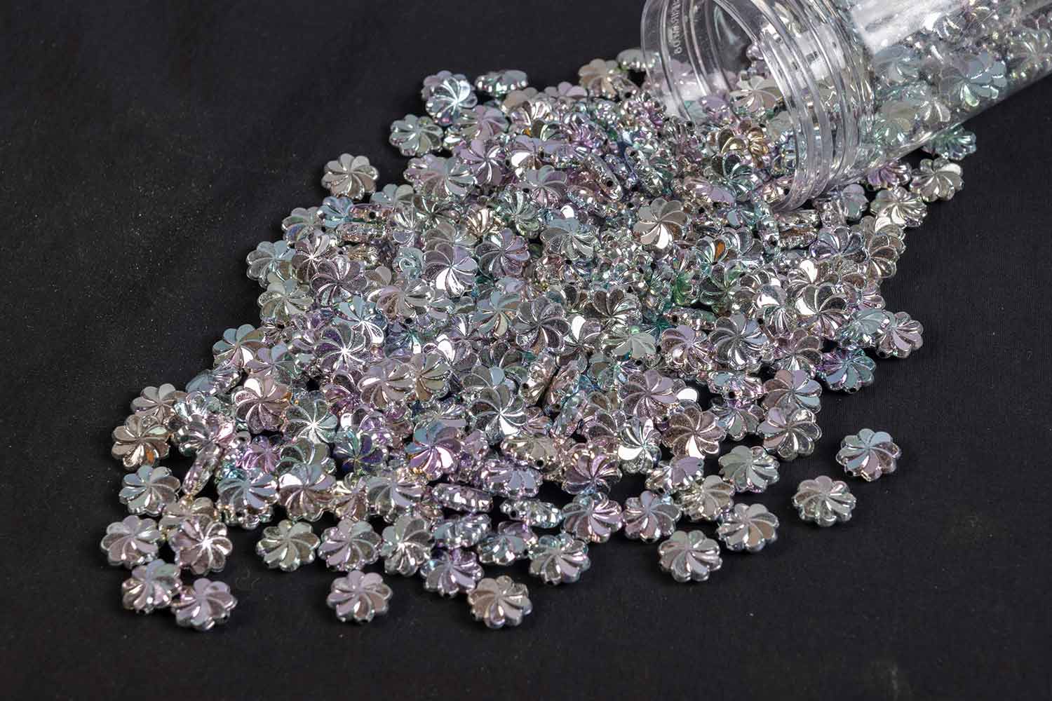 Silver Rainbow Color Flower Shape Plastic Beads Package of 50 Grams